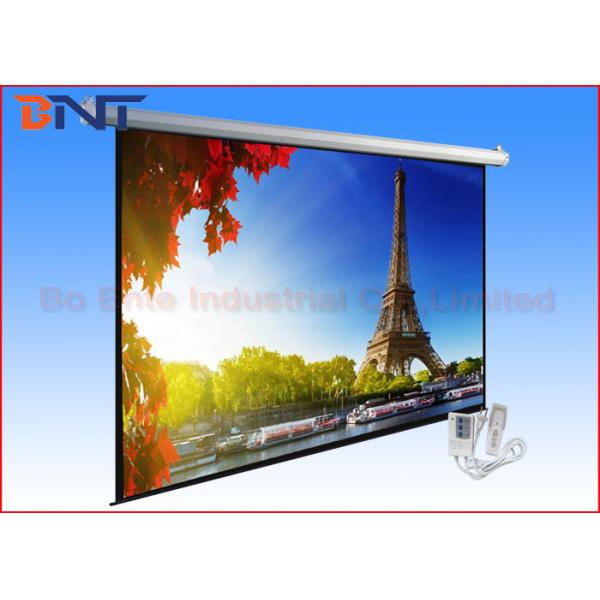 Electrical Projector Screen is designed for projector projection from ceiling/wall mounted. Easy installation for audio video system in famliy or business using. 1.0 high gain with 100 degree viewing angle make screen projection more clear and high quality. The projection surface utilizes unique materials creating a smooth surface for superior image quality.