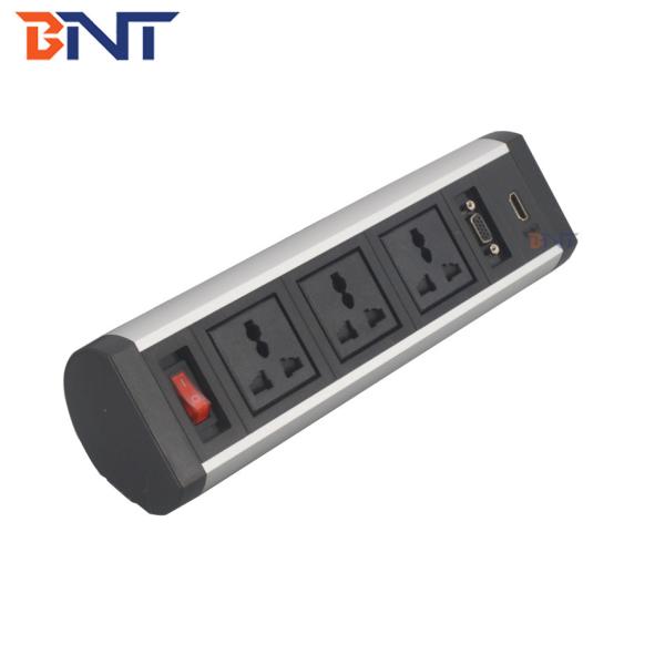 BTS series desktop socket is a movable table socket , it fixing on the desk by the bracket.Available for 15mm-35mm desk thickness, the socket is to clamp on the desk edge to use.No need to cut a hole for installation, and users could fix the socket on different location they want.Various configurations available for replacement as per requirement, such as HDMI, VGA, audio, USB charger, etc.Supply for modern office multimedia conference system, conference room, training room, etc